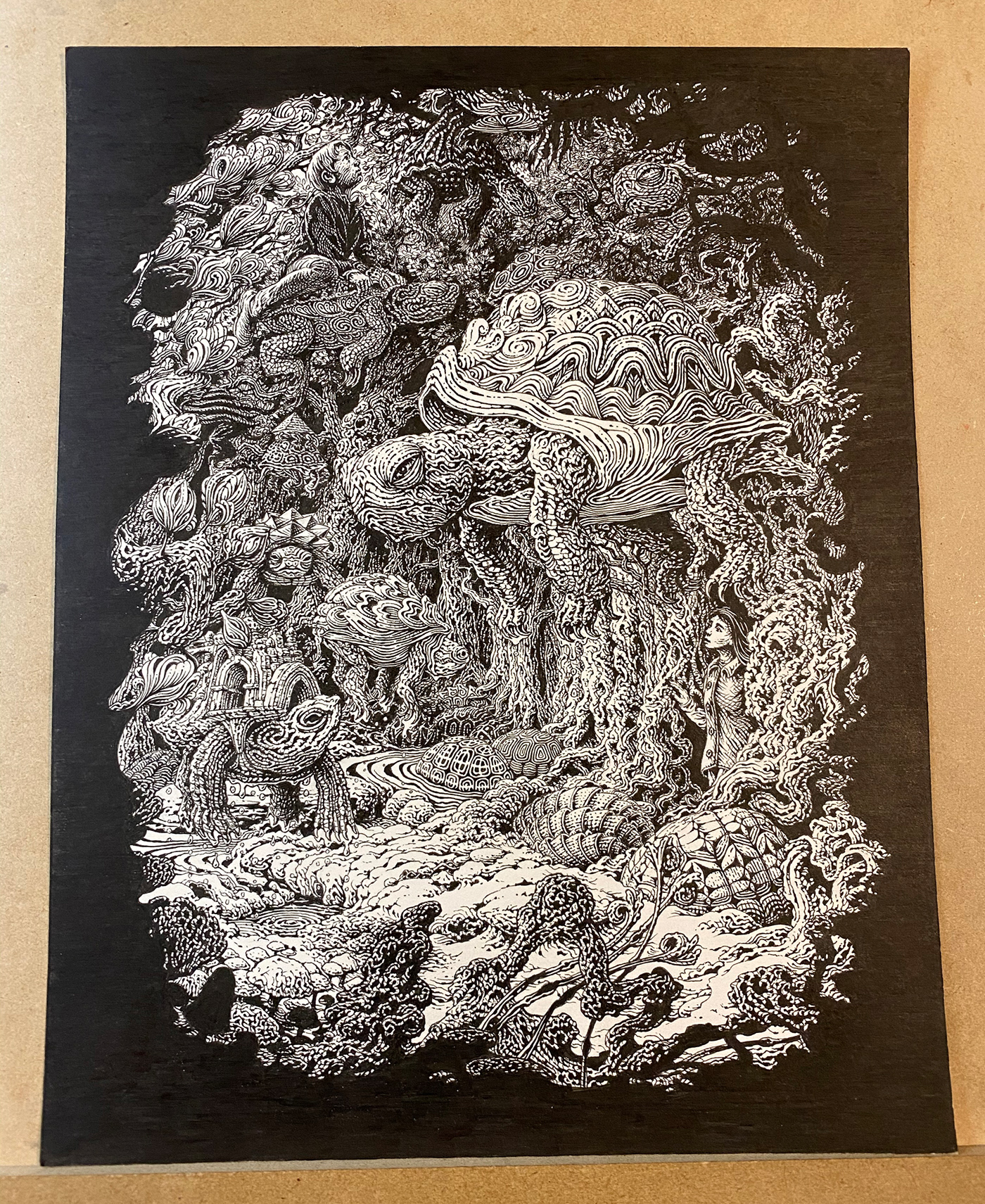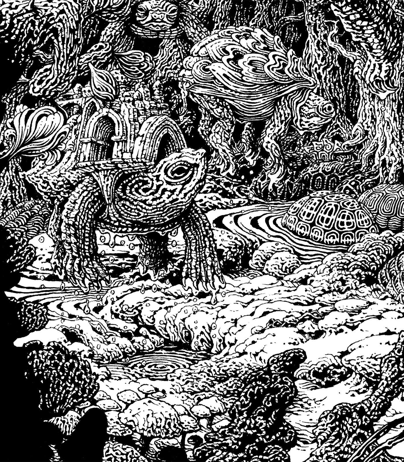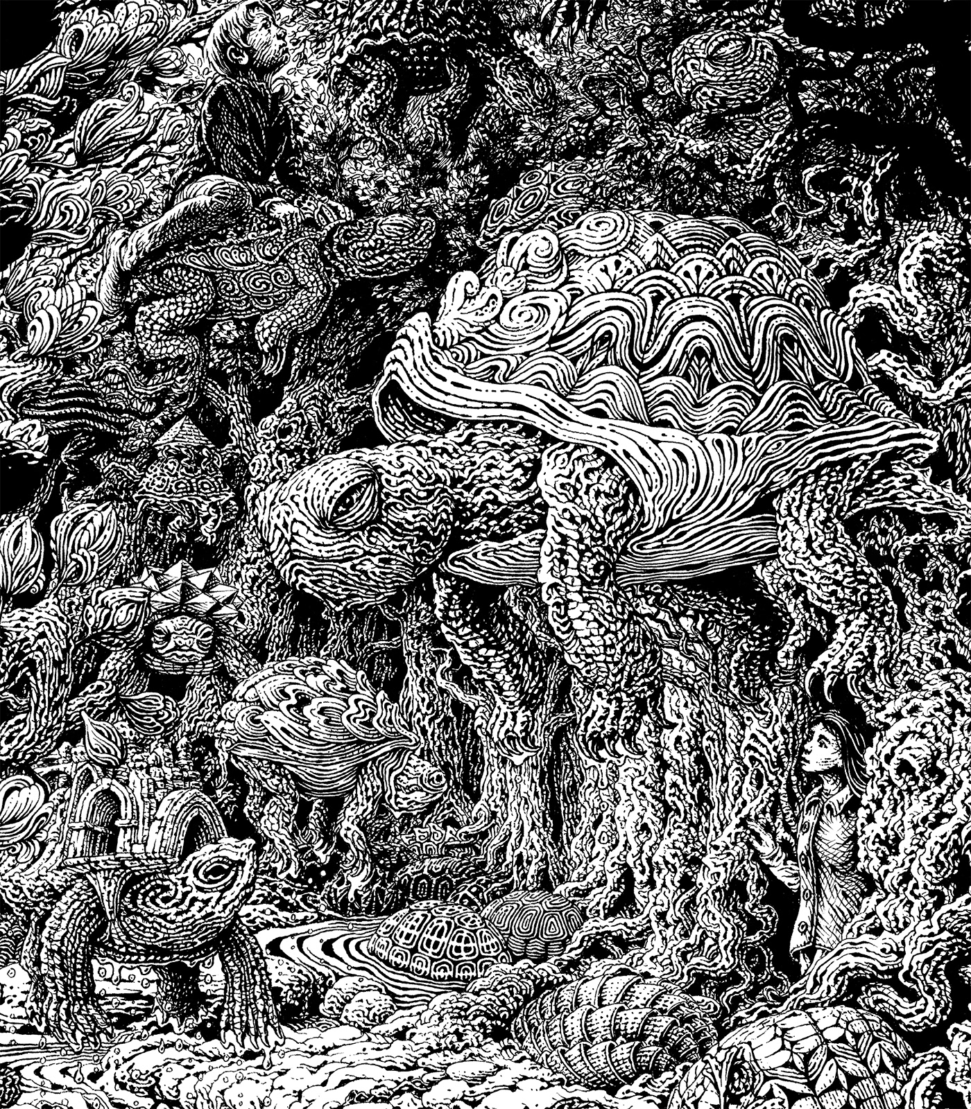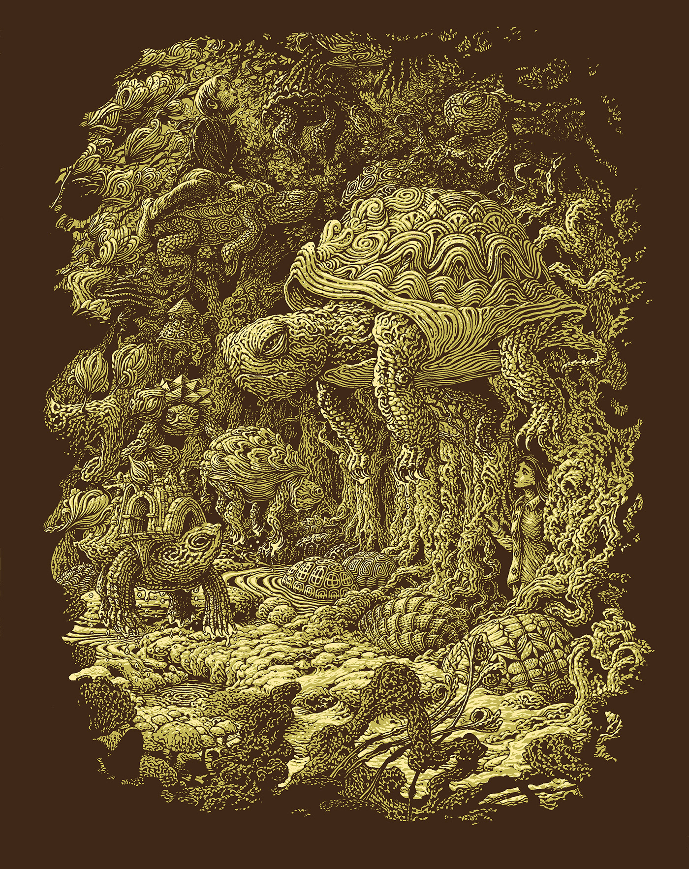 "Turtles Rising" ink drawing and screen print. I had a lot of fun drawing the designs on the turtle shells and skin. It's available as a limited edition screen print on my Shopify site.